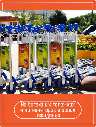 Артикул: 3284 Артикул: 3284 На багажных тележках и на мониторах в залах ожидания; Оформить заказ Оформить заказ Поделиться